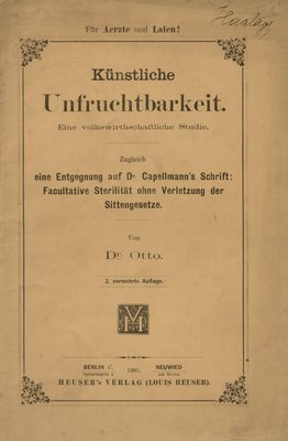 Zugleich eine Entgegnung auf Capellmann Schrift: Facultative Sterilität ohne Verletzung der Sittengesetze