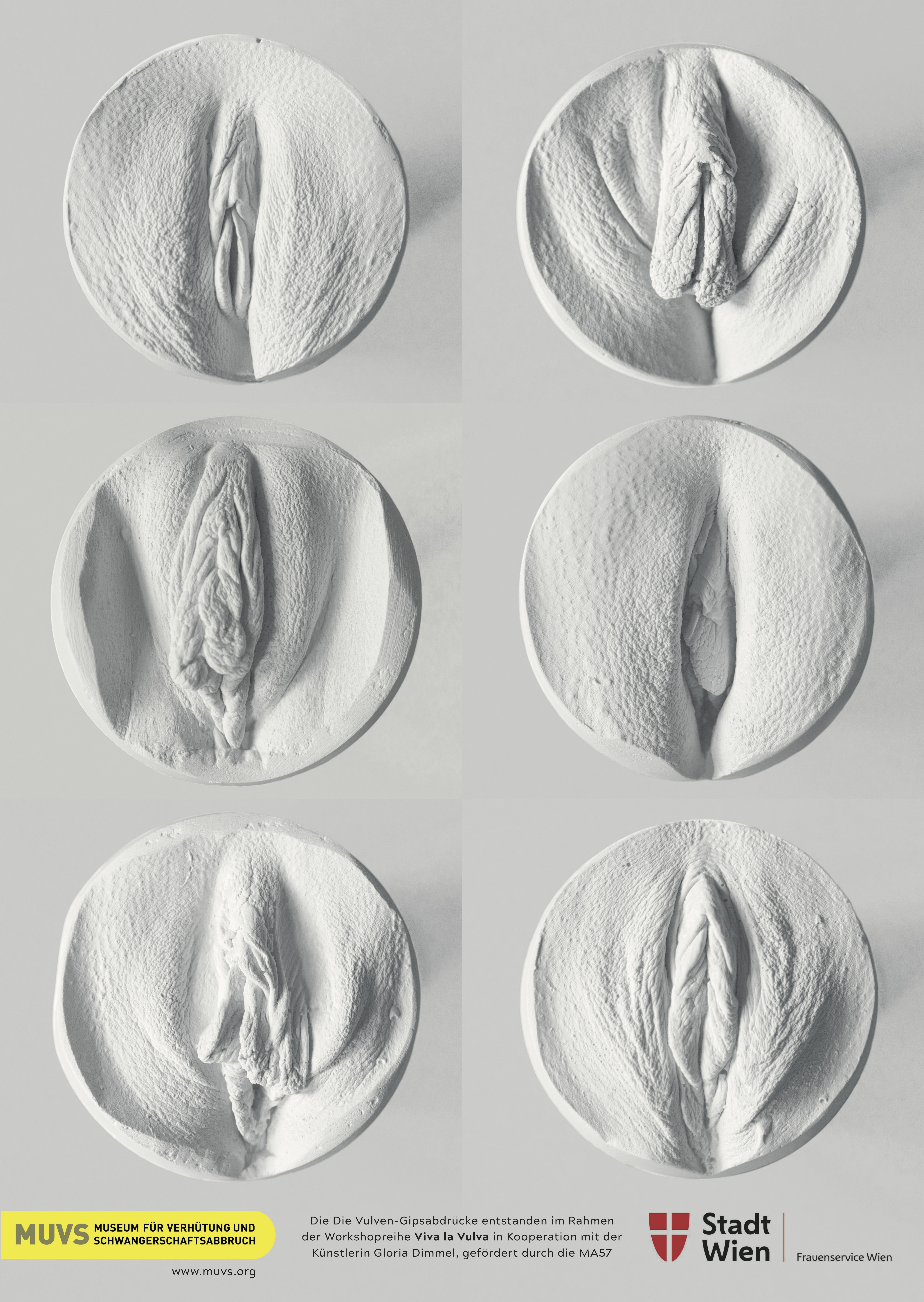 Mit dem Projekt „Viva la Vulva“, gefördert durch die MA57 will das Museum für Verhütung und Schwangerschaftsabbruch Vulven und ihre Vielfalt sichtbar machen und zeigen, dass jede Vulva einzigartig und schön ist. In Zusammenarbeit mit der Künstlerin Gloria Dimmel haben zahlreiche Frauen Gipsabdrücke von ihrer Vulva in so genannten Vulva-Sessions hergestellt. Diese Abdrücke wurden auf Plakaten, Postkarten und Sticker gedruckt und kommen bei den sexualpädagogischen Workshops im Museum zum Einsatz.