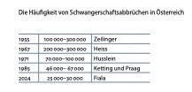 Im Jahr 1955 sagte der Rechtsanwalt und Österreichische Nationalrats-Abgeordnete Gustav Zeilinger: „Da an jeder [illegalen] Abtreibung etwa drei Personen beteiligt sind, begehen in Österreich rund 600.000 Personen im Jahr ein Verbrechen. Das bedeutet, dass in neun Jahren das ganze Bundesvolk - mit Ausnahme der Kinder - dieses Verbrechen begeht.“[3]
