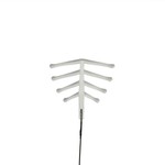 Die Spirale ist aus durchsichtigem Plastik und hat fünf Querverstrebungen. Die Verstrebungen sind nach unten gebogen und werden von oben nach unten gehend kürzer.