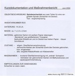 Stiftpessar aus zehn karätigem Gold. Die beschädigte Kartonverpackung wurde restauriert.