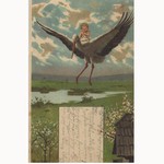 Kind im Korb mit Storch