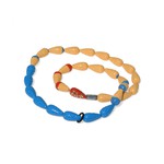 30 beads of beige, red and blue colour and a black movable ring.