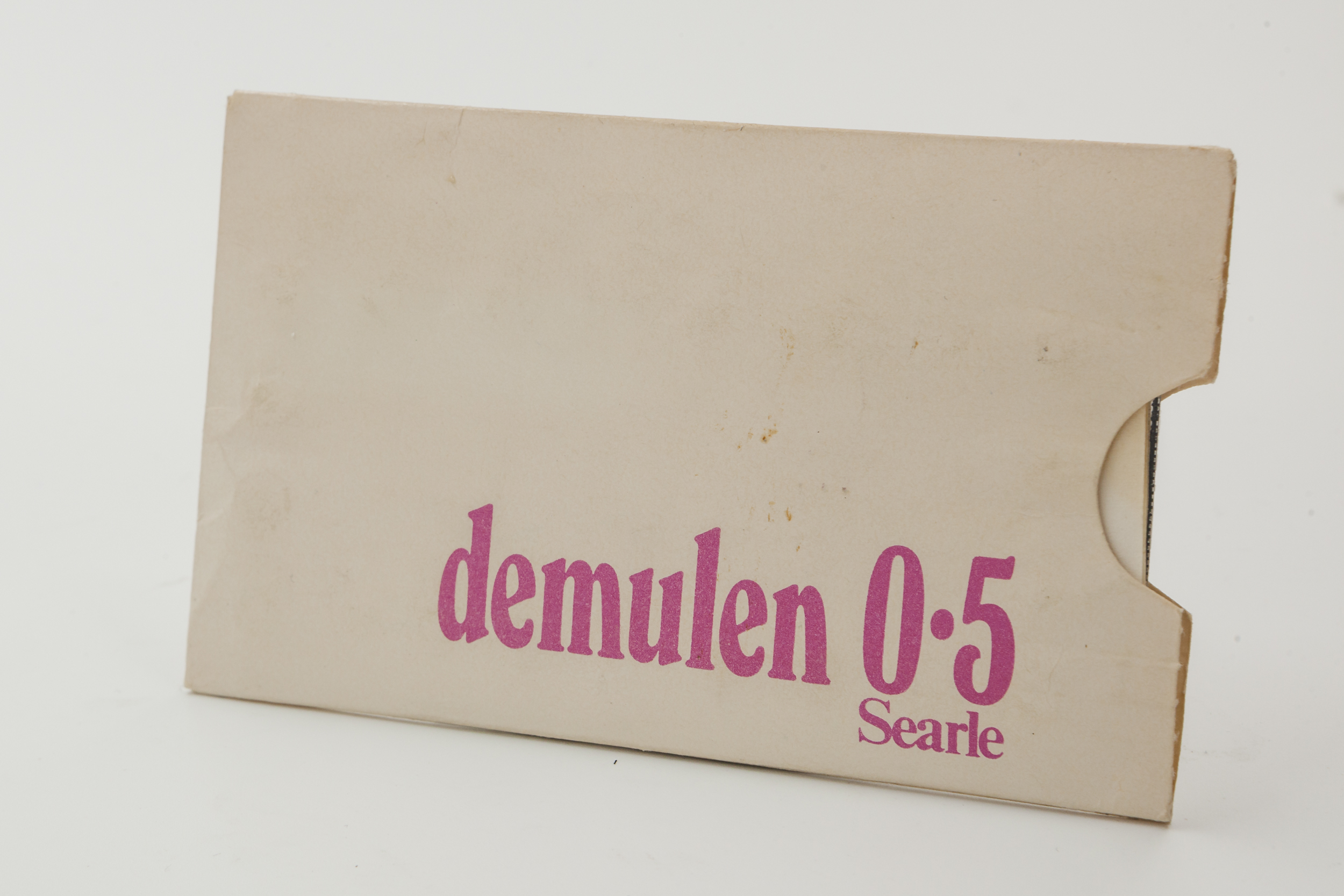 The blister pack, with 21 contraceptive pills. A patient information leaflet is enclosed. Collected by a major pill manufacturer for market research purposes. Each tablet contains 0,5 mg ethynodiol diacetate and 0,1 mg mestranol.
