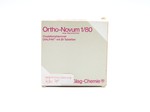 21 contraceptive pills in a storage box. An instruction manual is enclosed. Collected by a major pill manufacturer for market research purposes. Each tablet contains 1 mg norethisteron and 0,08 mg mestanol.