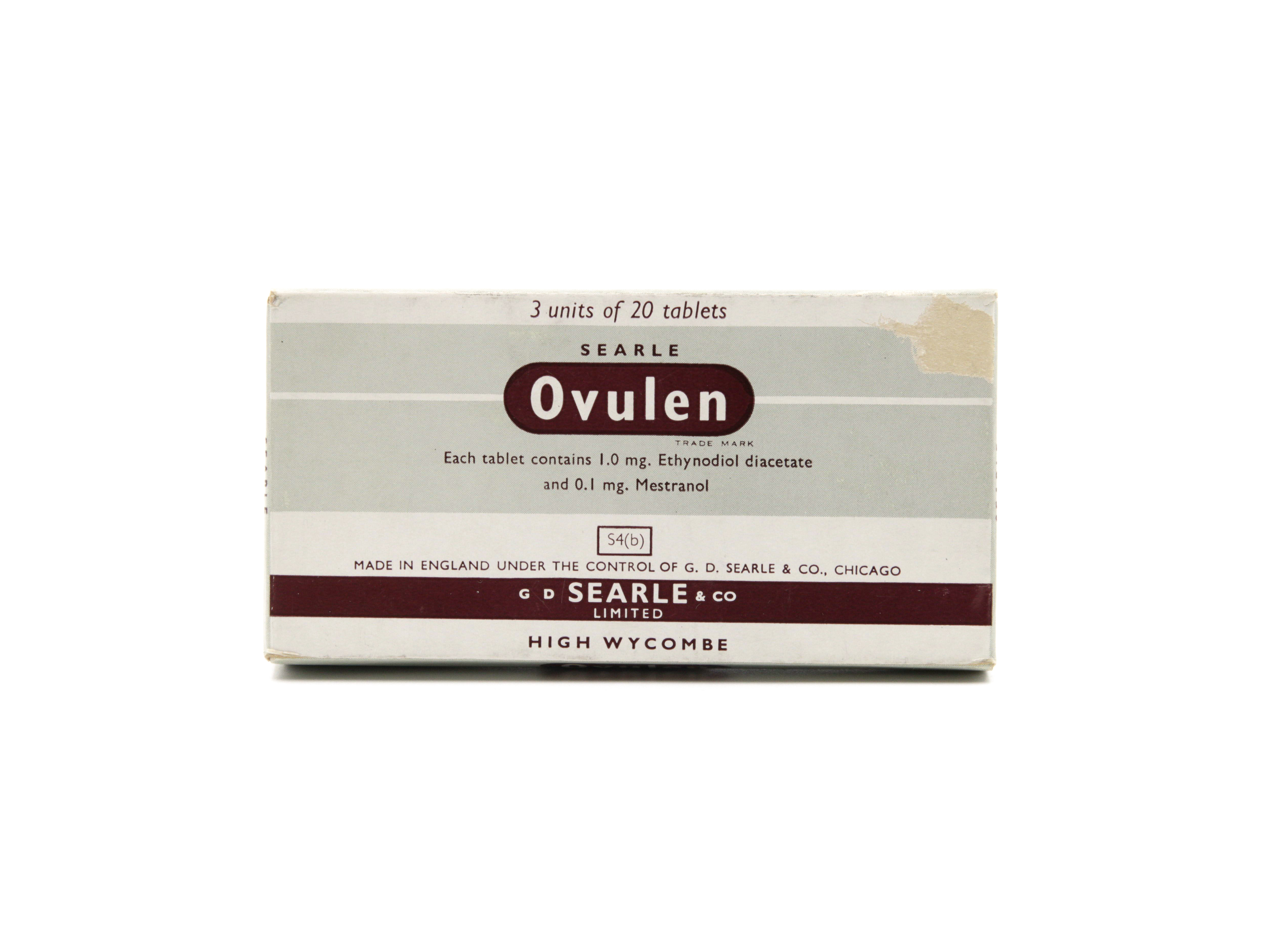 20 contraceptive pills, individually welded with an instruction manual. Collected by a major pill manufacturer for market research purposes. Each tablet contains 1 mg Ethynodioldiacetat and 0,1 mg Mestranol.